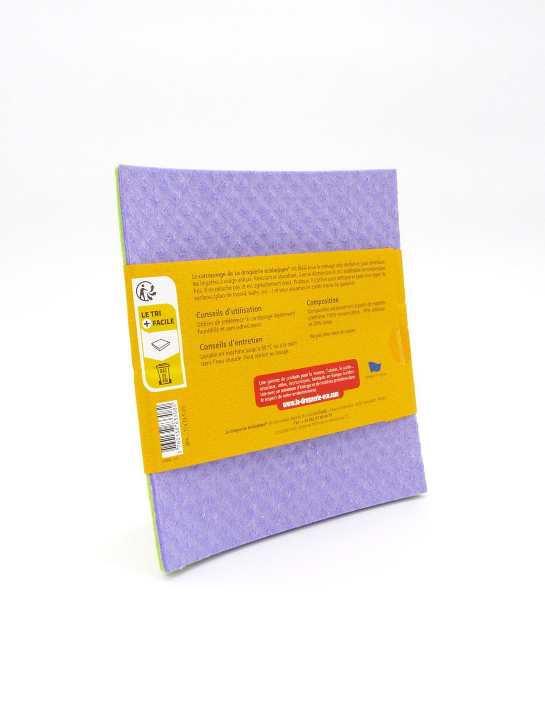 Compuestas de 70% celulosa y 30% algodón, las bayetas de la Droguería Ecológica, son de 100% materia prima vegetal. Su poder absorbente de 5l/m² y su resistencia y durabilidad elevada hacen de ellas un acompañante fiel en la cocina o el baño. Para reparar los ""pequeños accidentes del día a día"" o para limpiar, la bayeta siempre sirve. Tamaño: 17x19.5 cm, Cantidad: 4 unidades, Color: 2 verdes, 2 lilas EAN: 3760138833082